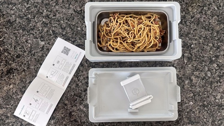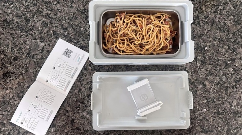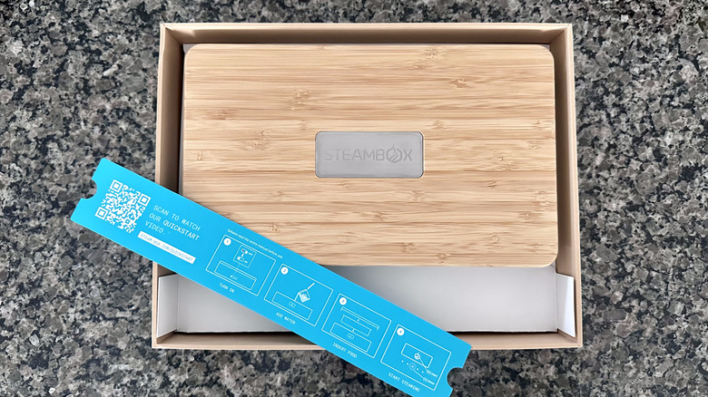 It with a user manual providing step-by-step instructions on how to use it. For visual learners or those who prefer interactive guides, QR codes are included that lead to instructional videos. These videos offer a hands-on view of the setup process and usage. One of the key features of the Steambox is its steaming technology, which requires a small amount of water. The product includes a water container designed to hold the exact amount required to heat your meal. It does a good job of minimizing guesswork and ensuring consistent performance every time.