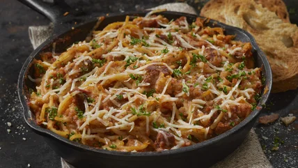 You can add hot or sweet Italian sausage to your jarred pasta sauce