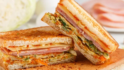 South Korea's savory go-to sandwich, which is often called Korean Street toast, is a combination of sweet meets salty. This sandwich starts with two slices of butter-toasted bread. Between those two golden slices are layers that include an egg and vegetable patty, ham, cheese, ketchup, mayo, and either jam or sugar for a sweet touch. It is quite tasty, but shredding the fresh carrots, cabbage, and sometimes onions for the egg-vegetable patty can be time-consuming. Luckily, there is a quick pre-packaged shortcut you can use.