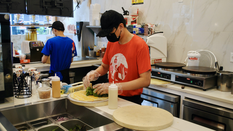 Meanwhile, on the sweet side of the menu, you can choose from classic crepes like strawberry Nutella or go in a more jazzy direction by ordering a matcha adzuki bean. Jerry Lin feels strongly about including multiple crepe options with fresh fruit: "I'm a father, so I love encouraging people to consume more fresh and healthy options," he told Tasting Table. As such, the sweet crepe flavors are based on fruits like mango, lychee, and wild berries.