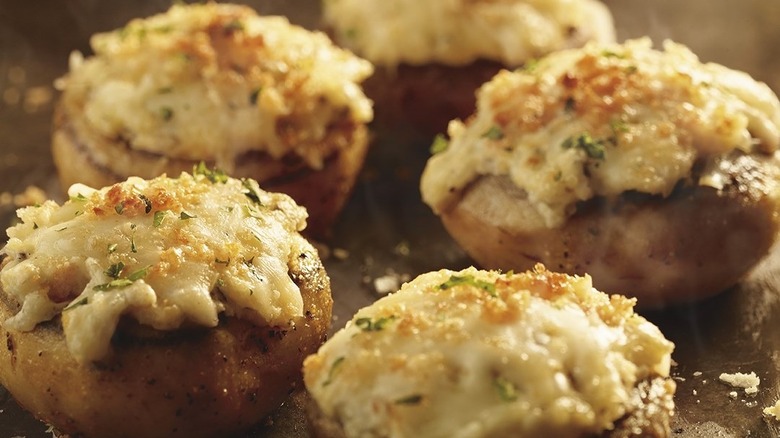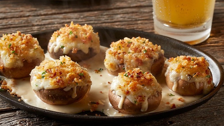 According to its menu, the dish serves two and has a total of 730 calories and 60 grams of fat. That makes these cheesy-filled mushrooms a great option if you're a vegetarian, a mushroom lover, or just want to hold off on meat until your juicy grilled steak arrives.