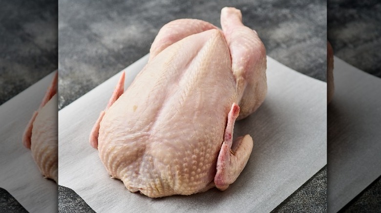 As a general rule, larger chickens above the 5-pound roaster range are going to be on the older side. This is because as chickens age, their meat becomes tougher, given the extra time their muscles have had to develop. The result can therefore turn out dry if it's not cooked the right way. This is why chicken stews like coq au vin call specifically for older birds — because the low and slow cooking helps tenderize the meat.