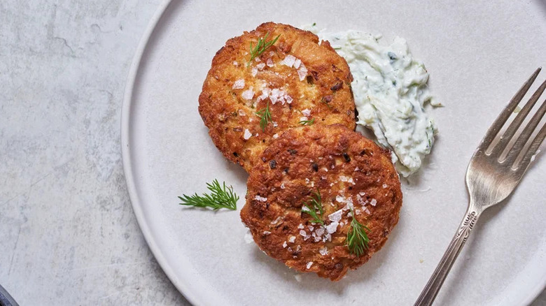 It may have never occurred to you to turn your canned tuna into a patty, but we're here to tell you that you definitely should. This recipe for dill tuna patties and cucumber cream sauce is one of our absolute favorite ways of preparing canned tuna. Frying the patties makes them nice and crispy, and you get a slight crunch when you cut into them and take a bite. However, all that fried tuna can be a bit heavy, so the addition of cucumber cream really pulls the dish together. It offers that creamy textural element we're going for, but the cucumber also provides some freshness that contrasts well with the fried patty.