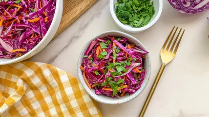 Wellness coach and recipe developer Miriam Hahn brings us this recipe and says, "Purple cabbage has a permanent home in my crisper drawer. I love adding it to every salad I make, and because it has a long shelf life, I can use a little bit each day for several weeks."