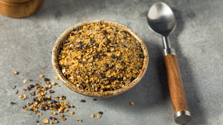 All you have to do is pick flavors that play well together. For a classic, French-inspired herbs de Provence dry rub, start with dried thyme, basil, rosemary, tarragon, fennel seed, and marjoram. Combine and break down these ingredients using a mortar and pestle or a small food processor. Any leftovers can simply be stored in an airtight container for later use. But you're not limited to just French flavors, of course. Your dry rub can bring in some Southwestern heat with ground chili peppers and a little cumin, along with some Worcestershire powder. Try a Middle Eastern rub, using za'atar, ground sesame seeds, dried sumac, and other herbs.