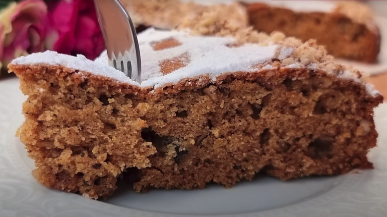 Tradition holds that the first step in recruiting assistance from St. Fanourios is to simply ask for help. The cake comes later, baked to demonstrate gratitude after the lost item is found. The vegan confection — no eggs or butter — usually consists of seven or nine ingredients (the numbers are a nod to sacred mysteries of the Greek Orthodox Church). Although some modern interpretations incorporate added flavors, a traditional nine-ingredient Fanouropita consists of flour, baking powder, salt, cinnamon, sugar, olive oil, orange juice, raisins, and walnuts.