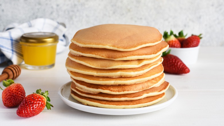 When it comes to boxed pancakes, the sky — not the box — is the limit. Luckily, pancake mixes come plain, so you can use it as a base for pancakes as well as other recipes. For pancakes, both the texture and taste of a pre-mixed package leave room for improvement. Whether you swear by chocolate chips or fruit, you'll have no trouble mixing — or topping — your pancakes with the ingredients of your choosing. If you'd rather stick to classic flavors, you can add the likes of milk, melted butter, and buttermilk to add a little more oomph to your boxed mix. But it's the richness of eggs that can often determine the texture of a pancake; if you're looking for something light, try just using egg whites, and for something that holds in more moisture, use just the yolks. Also, for ultra-fluffy pancakes, you'll want to sift your boxed mixture to aerate this dry ingredient properly.