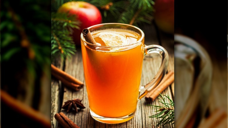 The Fireball apple cider is a variation on the classic hot toddy that will warm you up in the winter, or soothe you if you're feeling under the weather. To make it, pour two ounces of Fireball whiskey into a warm cup of apple cider. Stir it with a small spoon or straw, or if you have it on hand, a cinnamon stick for an extra burst of flavor. Here's a tip to make it taste extra delicious: try to get the apple cider from a local orchard.