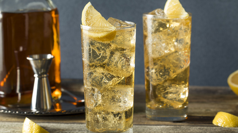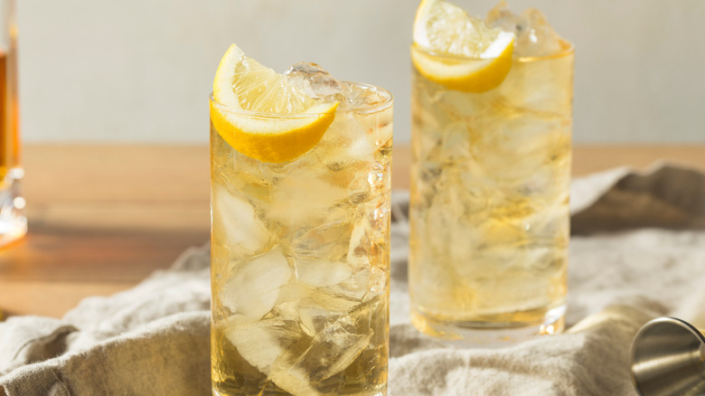 First crafted at least as far back as the 1890s, the ginger ale highball is another great drink for people who like to taste whiskey, but not have the flavor overpower them. The word highball itself comes from a combination of the old Irish/English use of "ball" to denote a glass of whiskey, combined with "high" because of the tall glass used to serve it. Top off about one-and-a-half ounces of rye whiskey with ginger ale to make this slightly fizzy drink. Some people substitute bourbon for rye whiskey.