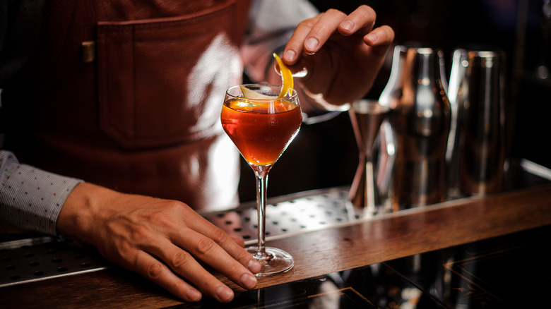 Classy yet simple, the Godfather cocktail is one of the rare sophisticated drinks that takes almost no time or special effort to make. Combine three parts Scotch whisky and one part amaretto liqueur in a rocks glass, preferably over a large ice cube. Stir them together, and you're ready to go, and by go, we mean drink. In case you're wondering, yes, the cocktail does get its name from the Academy-Award-winning 1972 film of the same name, which featured Scotch on the rocks in multiple pivotal scenes.