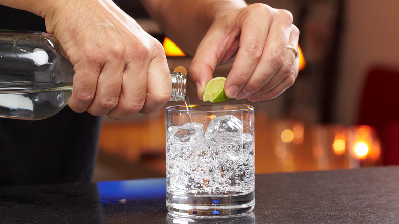 The slightly stronger-flavored but also higher-calorie alternative to a vodka soda is a vodka tonic. Though both are pretty similar, vodka tonic consists of vodka mixed with tonic water instead of club soda. The difference is that tonic water has a little bit of added sweetener as well as quinine, which introduces a bittersweet note into the mix. This makes the classic vodka tonic a nice palate cleanser and creates a more nuanced, complex flavor profile than a vodka soda contains.