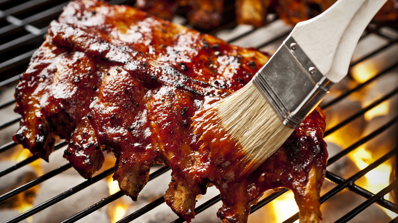 You recommend brushing ribs with BBQ sauce right before they're done. Why is that important?