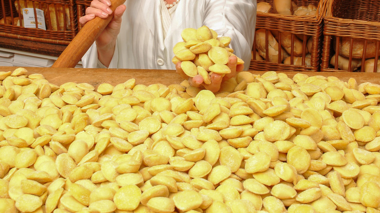 In Parma, a city in northern Italy, anolini is often saved for holiday feasts at Christmas and Easter. If it is enjoyed during the summer (which happens commonly on Sundays), it's still eaten as a hot dish. You'll most often see it served as a part of "anolini in brodo," aka anolini in broth. But what else separates this type of pasta from its stuffed brethren? Let's find out.