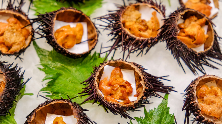 While Royster calls uni "some of the best sushi bites you can possibly have," he also admitted they're "an acquired taste." Even though most uni recipes are fairly straightforward, he also notes that preparing the shellfish should probably be left up to professional chefs since harvesting the uni from the shell is a tricky business that involves cracking open the spiny shell and carefully prying out and cleaning the delicate meat from the inside.