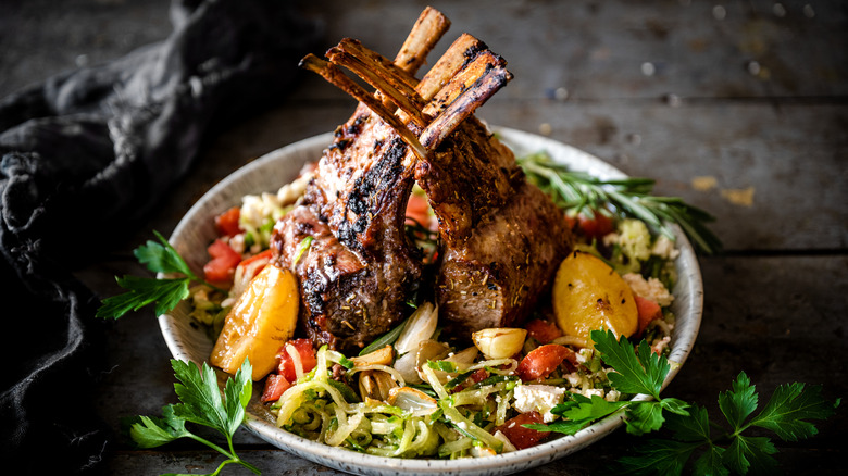 French cuisine has a reputation for elegant presentations — dishes that are as lovely to look at as they are delicious to eat. It follows then that cuts of meat that have been "frenched" have been prepped to be aesthetically pleasing. Frenching a bone quite simply means scraping away the meat, connective tissue, and fat from that bone, exposing it in dramatic relief. Meats that are typically frenched include racks of lamb, beef, and pork chops, which can be served as a simple rack or trussed up to stand in a circle, forming what's known as a crown roast.