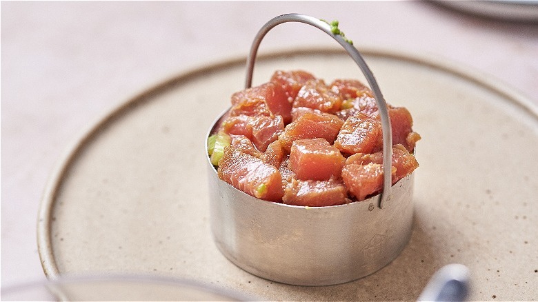 We know "tartare" can be an intimidating word. Most often made with fish or beef, tartare is raw meat usually formed into small patties and served with additional flavorings. While steak tartare has some complicated food safety guidelines, raw fish is a bit more straightforward: The parasites present in fresh, wild-caught fish are killed at low temperatures and can be prevented with specific freezing techniques, as outlined by the Cleveland Clinic. That's why sushi, sashimi, and poké are so common and generally considered safe (gas station sushi aside). Especially if you source it from a reputable fishmonger, raw tuna is safe to prepare at home.