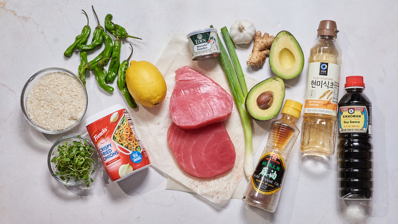 The ingredients you need for tuna tartare stacks with wasabi shishitos