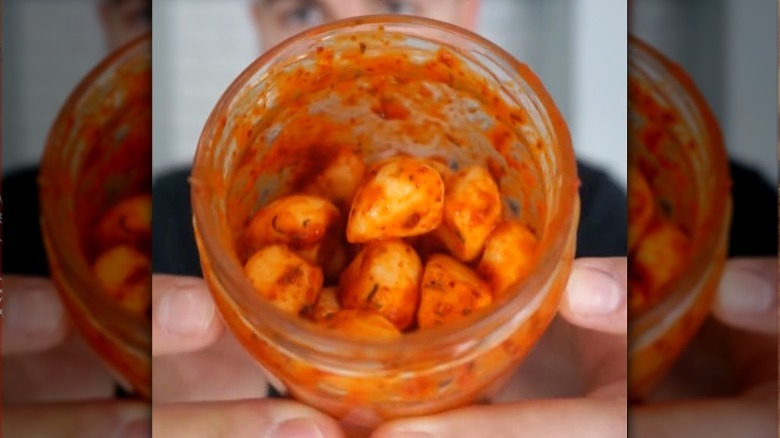 Of the many types of garlic available, pickled garlic may seem like something you'd only see on an antipasto platter. But this convenient pantry item is an instant umami booster for your cooking, adding sour and allium aromas to sauces, marinades, and more. Well, TikTok is here to help take this flavor bomb to the next spicy level.