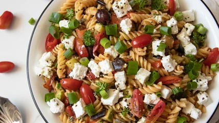 Ina Garten's tomato feta pasta salad recipe is full of all the good stuff we love in a hot dish — tomatoes, noodles, feta cheese, and olive oil — but in a cold bowl perfect for summer. The Barefoot Contessa uses a pound of ripe tomatoes to provide freshness, but the real heart of the pasta salad comes from the yummy salty ingredients: black olives, feta cheese, and sun-dried tomatoes. True to Garten's recipes, the olives and cheese (and olive oil) must be good quality, she notes in her recipe.