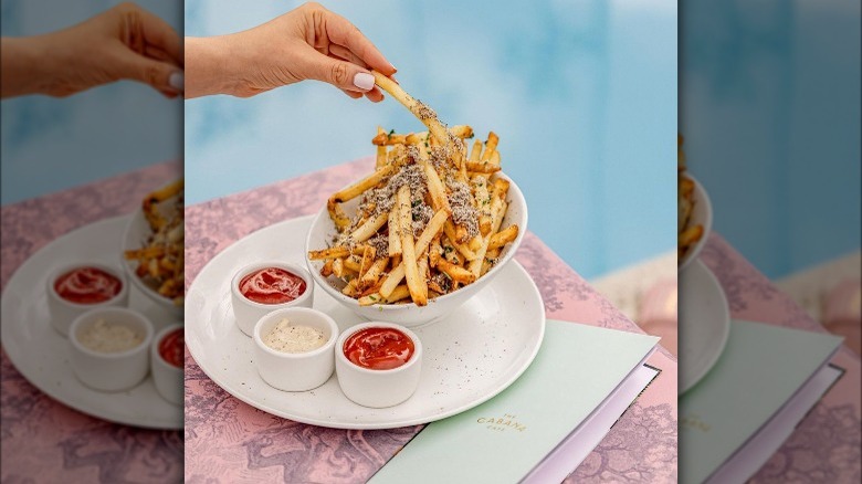Start your meal on a fancy foot with Kaluga caviar, fresh oysters, and a classic bread basket. You can even enjoy Champagne and Kaluga by the pool. If you're in the mood for pasta, order the Cacio e Pepe or splurge on the Maine lobster rigatoni. That said, the slow-cooked half duck is served alongside a truffle-braised endive salad that pairs perfectly with the tender duck. The short ribs are filling but flavorful, and the wood-fired pizzas are also worth exploring.