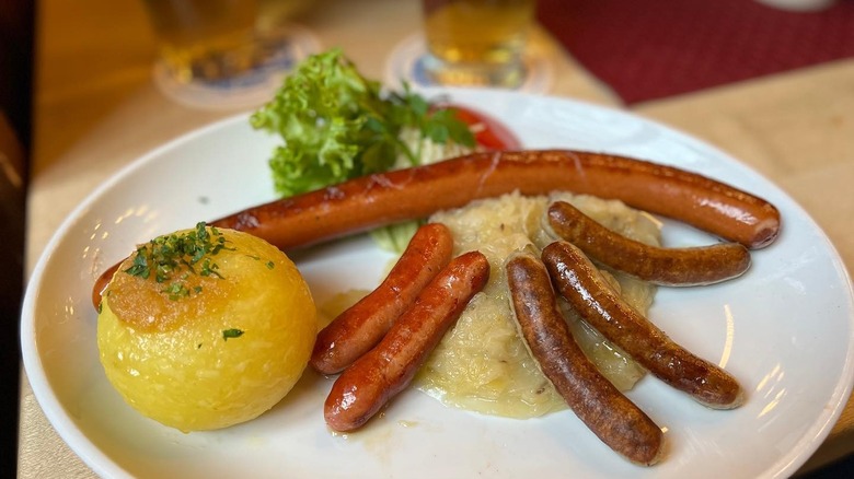 According to Introducing Munich, Hofbräuhaus is so emblematic of the city that it attracts more than 35,000 visitors each day from all around the world. Start with a stein of an ice-cold Münchner weisse with a piping hot bowl of kartoffelsuppe, a deliciously rich potato soup stewed with other root vegetables, and loads of fresh parsley. Then move on to any of its sausage specialties made from house butchery — we suggest the plate of the traditional Munich sausages made from veal and served with sweet mustard.