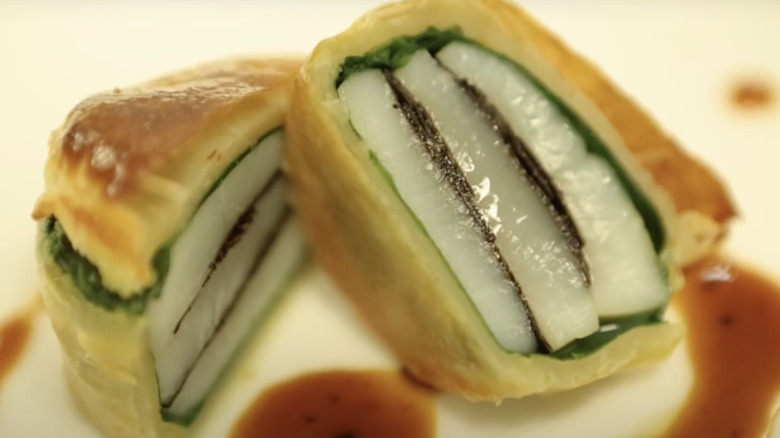 No. This technique, sometimes it's applied in competition. The MOF does chef competitions, and everybody is doing the same dish. It's not like "Iron Chef," [where they would tell you] "Here is the octopus. Now do whatever you want with it." Everybody has very strict guidelines on how to cook an egg, and they have to do it to perfection. Sometimes chefs use this technique that will combine the basic technique of an omelet and then the basic technique of scrambled eggs and put the two together. It's called an omelette fourrée, and "fourrée" means "stuffed." Stuffed omelette. It is not practiced in restaurants or anything like that, and it requires a little bit of a technician to be able to do it right.