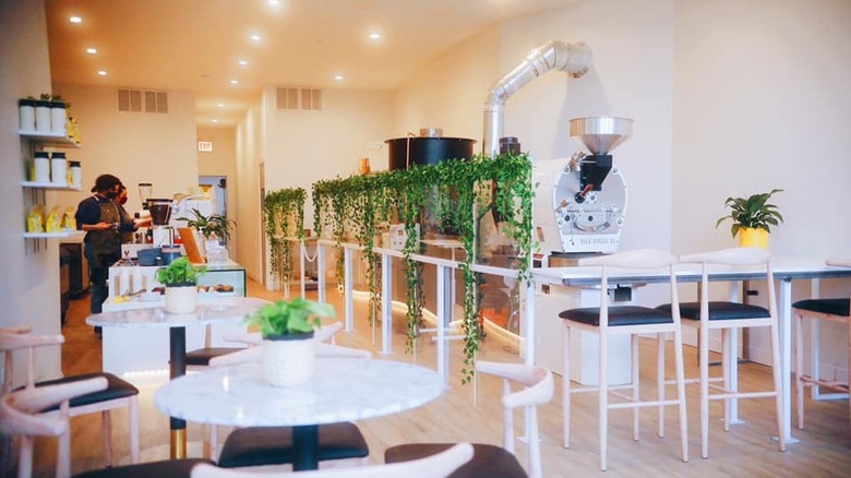 But don't worry, there are more choices beyond just the options of espresso, filter, or hand-brewed coffee listed there in sans serif font. Signature drinks include "Defund the Military" (a concoction of matcha, chocolate, bourbon vanilla and milk) and "Howl's Moving Castle" (butterfly pea flower, distilled coffee, coconut, nutmeg, vanilla, and cinnamon). But you might want to focus on a straight-up espresso, the better with which to appreciate the nuanced flavor notes of the rotating coffee selections, which often are Nordic-style roasts that aren't as common.