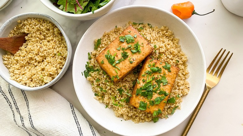 The grilled tofu can be served on a bed of rice, quinoa, or greens. You can even slice it up and make a sandwich out of it. So, fire up the grill, we've got some fabulous flavor coming your way!
