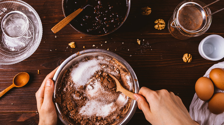 Any chef can tell you the importance of a mise en place — a method of organizing and structuring your kitchen space for maximum efficiency. The same concept can be applied to making cookies. Anna Gordon recommends home cooks set up a mise en place of sorts prior to baking cookies. This includes always measuring ingredients before turning any machines on and reading your recipe to know if you're going to have to chill your dough in the freezer or refrigerator before baking. "I cannot overstate these kinds of things," she comments.