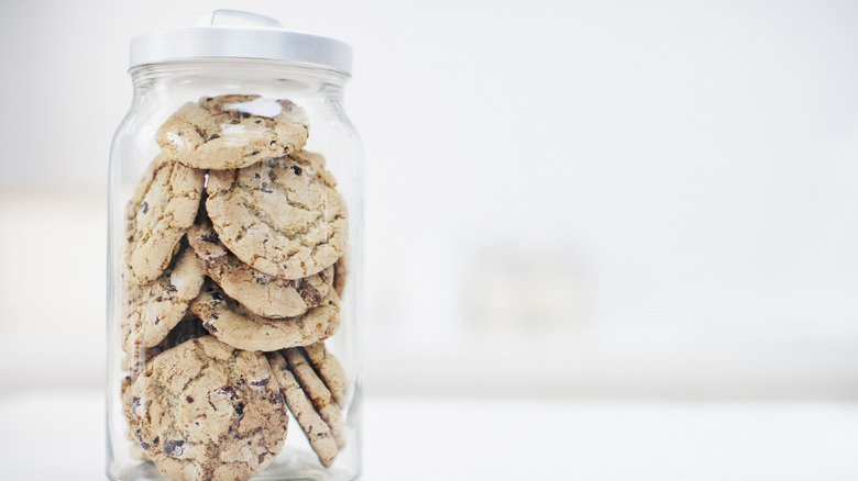 And although a countertop cookie jar is an aesthetic way to display your favorite homemade cookies, Gordon notes that this storage method will only last a few days because the seal isn't airtight. She also doesn't recommend storing the cookies in the fridge because the condensation can cause the cookie to dry out. The fridge should only be used if the cookies have a glaze or a frosting.