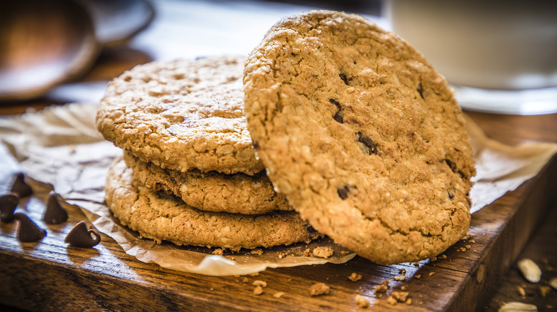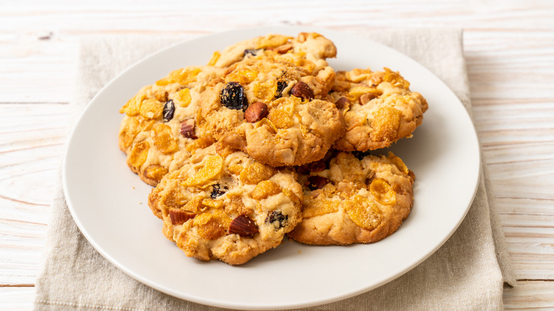 If you're looking for flavor for your cookies, Anna Gordon recommends taking a trip down the cereal aisle at your grocery store. She shares that breakfast cereals can add both an unexpected crunch and unique flavor to your cookies, depending on the variety you select. "I would stay clear of really sugary-flavored cereals, but I like things like Rice Crispies or cornflakes or broken-down Cheerios or something like that," she suggests. "You can add a really, really fun crunch — like a surprise of crunch to [your cookies]."
