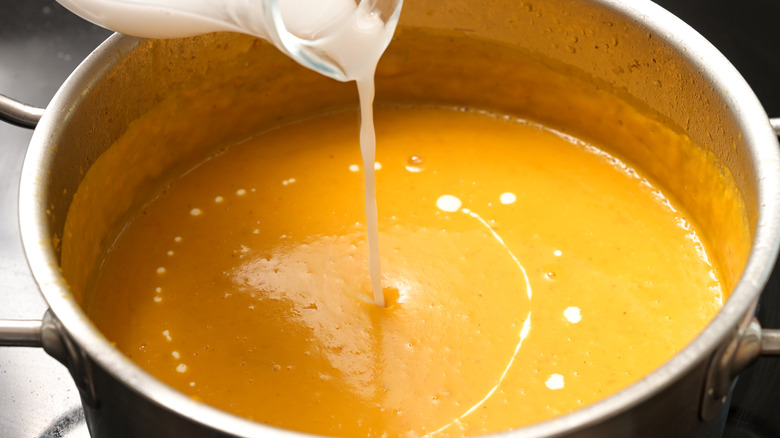 Add coconut milk to your sauce ingredients before you've pureed them for best results, Tyler Florence suggested. That way, as the celebrity chef explained to Tasting Table, you "let the flavors simmer" together. When you do blend them into a sauce, you'll "get this bulk viscosity" and an "explosion [of] flavor at the same time because you create this velvety puree of all of it."