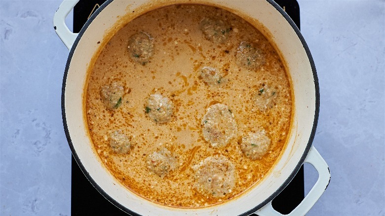 Finish the soup and add the meatballs