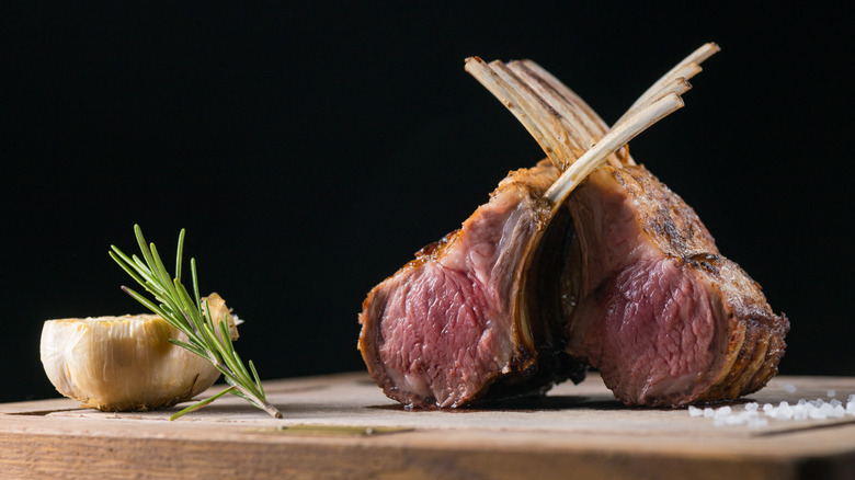 Rack of lamb is such a classic cut of meat to serve at a dinner party, and there's a good reason — it's the most sophisticated finger food you can get away with in polite company. And it tastes amazing, when done right, of course. Something about a perfectly pink medallion of meat poised at the end of a delicate lamb bone screams fine dining experience, and that's equally as true in fancy restaurants as it is at fancy dinner parties. And since rack of lamb is no inexpensive cut of meat, it's important to know how to get results that taste as indulgent as possible.