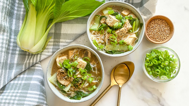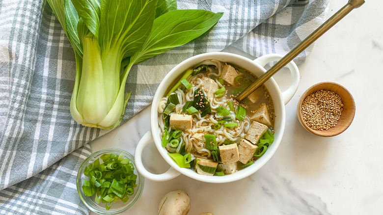 Whether you're a fan of Asian cuisine or just a soup lover, this hearty bok choy soup needs to go on your list of meals to make ASAP. This comforting soup combines the crisp freshness of bok choy with hearty mushrooms, noodles, and seared tofu to give you a complete meal in a bowl.