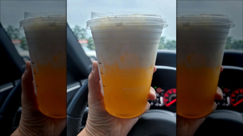 When you step up to order this customized beverage, be sure to be clear about what you're asking for. Instead of asking for a Dole Whip, which your barista might not be familiar with, specify the modifications: request the Pineapple Refresher, but instead of water, ask for it to be made with sweet cream cold foam, and then blended. You could also ask for a typical Pineapple Refresher, but with no water and vanilla sweet cream cold foam on top. This would be an iced beverage rather than a blended one, but it is just as delicious.