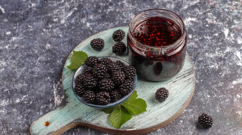 Although many fruits taste best when paired with a light refreshing flavor, blackberries have more range. Consider using dark balsamic vinegar to highlight the berry's depth, but also know that you can use citrus and balsamic to lighten it up. If you go the dark balsamic route, sweeten your dressing with maple syrup, and pour it over dark leafy greens. Use fall-time toppings like pecans, roasted squash or Brussels sprouts, and thinly sliced grilled red meats. Both soft and hard cheese can help balance and highlight the tangy intensity of blackberries. Other mellow fruits like pears can complement the fruit's natural sweetness, without stealing the show from your statement vinaigrette.