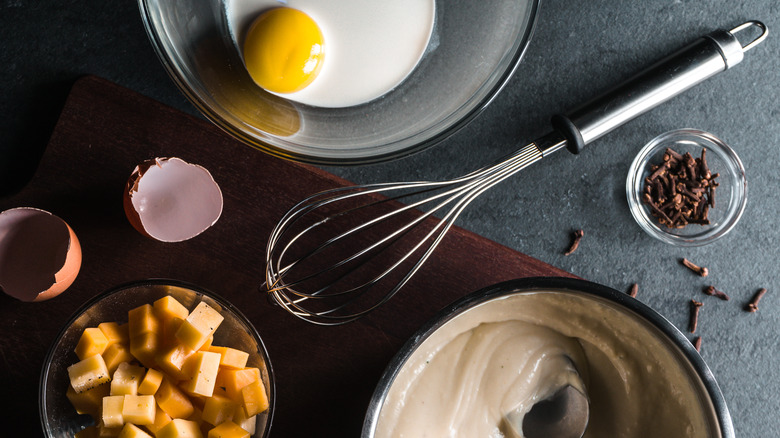 There are a few directions one could go with adding cheese to moussaka. One of the easiest and most decadent ways is to add cheese to the béchamel sauce, turning it into a mornay, the cheesiest of the five French mother sauces. As the sauce is an integral part of the moussaka, adding the cheese will bring about a richness and depth of flavor. Taking a cue from moussaka's Italian cousin, lasagna, you could also integrate the cheese in between the layers of vegetables and sauce.