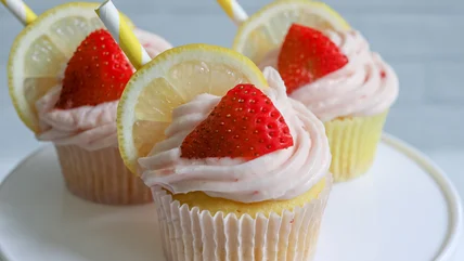 These strawberry lemon cupcakes offer a refreshing, summery flavor.