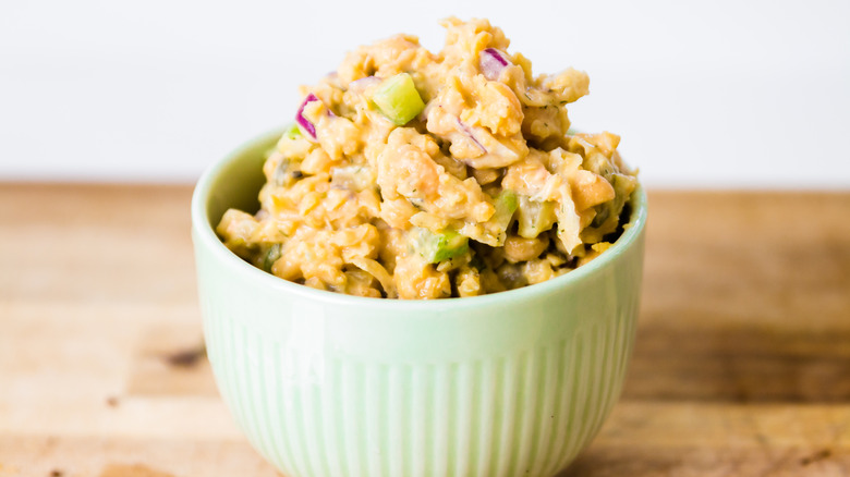 If you're looking to make a tuna salad that seems like it uses the fish out of the can, make like the store-bought versions and start off with a chickpea base. After you've mashed them up and stirred in some vegan mayo (or hummus), add some sea-inspired ingredients like soy sauce, chopped-up seaweed, nutritional yeast, and capers. Then include some additions that you might find in a regular tuna salad, like celery, red onion, mustard, and lemon. You'll get fishy flavors, without the actual tuna.
