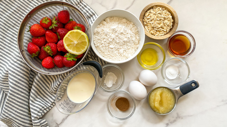 Gather the ingredients for strawberry oatmeal muffins