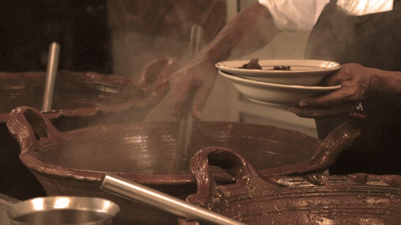 On the first episode of the fifth season of his travelogue show "No Reservations," Bourdain visited the restaurant, which is famous for its ample selection of stews and (yes) freshly-roasted coffee. In clay pots, guisados simmer and perfume the air with heady aromas of meat, vegetables, and spice. To accompany them are warm tortillas, and a plethora of bright salsas that play off the rich stews.