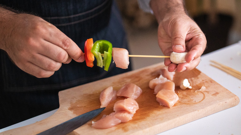 Kebabs are great on so many levels. Perfect for customizing to your taste, they're an incredibly aesthetic dish to serve at any backyard barbecue. They're also super simple to prepare — that is, with the right know-how. If, however, you have a history of overcooking or burning skewers, we've got the solution. To keep kebabs at their juiciest, you might be curious to learn that proper assembly is everything.