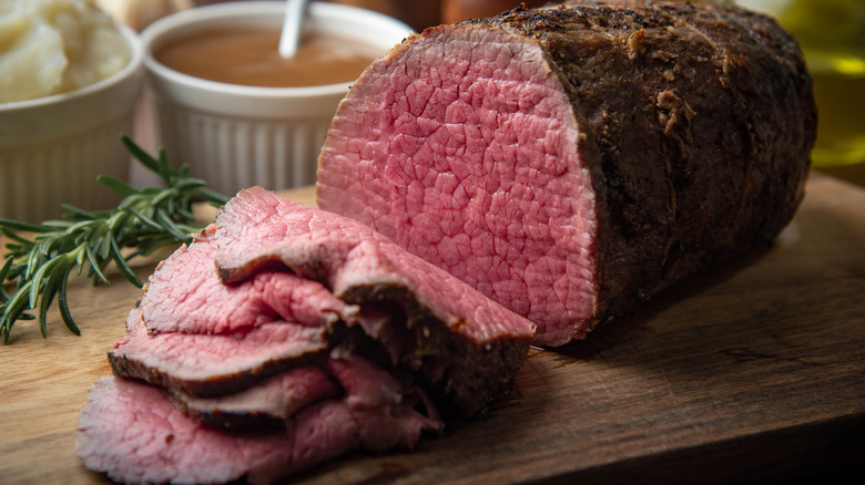 Top loin roasts are usually reserved for making Italian beef sandwiches, so it's fitting that they can work just as well for roast beef ones. The top loin roast comes from the primal loin, which includes fattier cuts ribeye, sirloin, and porterhouse. Also known as a NY strip roast, the top loin has a little more in the way of marbling fats than other lean cuts, but that means more in terms of beefy flavor. Roasted in the oven or done in a pot roast, a top loin roast will yield succulent and tender slices.