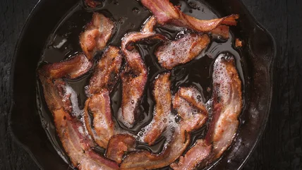 To illustrate this idea, we propose a list of ingredients that you've probably never thought to cook with bacon. But first, let's be clear about a few things. In order for any bacon dish to truly work, you have to select a good quality piece of bacon. For most dishes, we recommend the center cut, which contains about 30% less fat than a regular cut and packs a stronger punch of pork flavor. You also have to establish a good cooking technique. Be sure to start with room temperature bacon and lay it on a cold skillet for more even cooking and to give the bacon fat enough time to warm up and act as a non-stick agent on the pan. Once you've got your method down, it's time to start experimenting with some unusual ingredients.