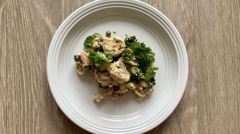 Tuna salad is a standard lunchtime staple for good reason. It's high in protein, ready to eat straight out of the can, and goes great in all kinds of salads. But tuna salad is a tad boring and more than a tad polarizing. Whole Foods levels up the experience by swapping in salmon, and zhushing it up with lots of cheesy tortellini, puffs of kale, and pebbles of peas — and, of course, dill, the quintessential herb for our favorite pink fish. We weren't at all excited to eat this, to be honest. We did not think we needed it in our lives. But hey, we actually sort of loved it. It's great to be humbled sometimes.