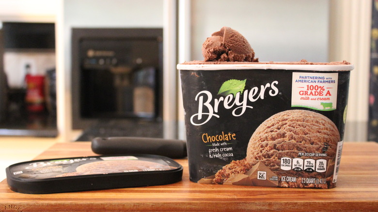 Founded in 1866 by William A. Breyers of Philadelphia, Breyers is one of America's oldest and most well-known ice cream brands. The company touts that its ice cream is made with "fresh cream and real cocoa," and you can taste its unmistakable clean flavor. The list of ingredients is relatively simple, including milk, cream, sugar, Dutched cocoa, whey, and tara gum.