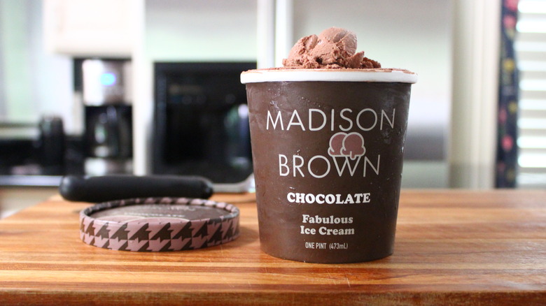 The texture of the ice cream was dense but easy to scoop, and the mouthfeel was pleasant. However, it tasted more sweet than anything. The consensus was that there wasn't enough chocolate oomph, with one tester adding that it tasted "like hot cocoa without enough cocoa." The Madison Brown website describes the chocolate ice cream as "milk chocolate with a hint of dark chocolate throughout." Still, we couldn't detect any dark chocolate flavor and not much of any chocolate flavor, for that matter. The ingredient list includes "chocolate ice cream powder" and "natural chocolate flavoring," which could be why it lacked authentic chocolate flavor. One word to sum this ice cream up? Meh.