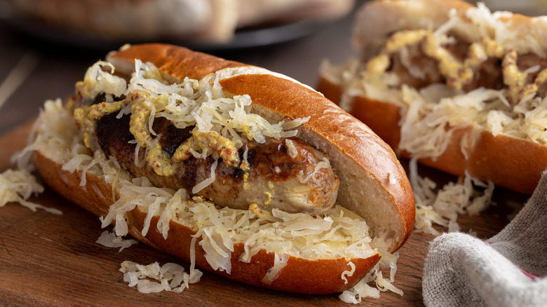 Brats are the quintessential meat everyone is dying for by summertime — especially in the Midwest. They're also great for feeding larger groups and are perfect for making in the slow cooker. A variation of a Milwaukee favorite, slow cooker beer brats are easy to make and will keep your party guests coming back for more. To make this flavorful dish from recipe developer Michelle McGlinn, you'll need beer — ideally a German-style beer, but any lager or ale will do — pork brats, sauerkraut (depending on your preference), gold potatoes, yellow onions, bay leaves, garlic, mustard seed, and caraway seed.
