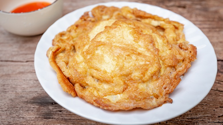 Thai omelets are puffed up in the middle and have crispy edges because they're fried on high heat with plenty of oil. They also have a meaty flavor because umami-tasting fish sauce is incorporated into the eggs, which are beaten until well frothy to encourage a fluffier center. Traditionally eaten plain, fillings like scallions, ground beef, and pork are occasionally added too.